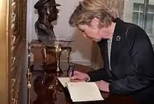 A guestbook (also guest book, visitor log, visitors' book, visitors' album) is a paper or electronic means for a visitor to acknowledge a visit to a site, physical or web-based, and leave details such as their name, postal or electronic address and any comments. Such paper-based ledgers or books are traditional in churches, at weddings, funerals, B&Bs, museums, schools, institutions and other private facilities open to the public. Some private homes keep visitors' books. Specialised forms of guestbooks include hotel registers, wherein guests are required to provide their contact information, and Books of Condolence, which are used at funeral homes and more generally after notable public deaths, such as the death of a monarch or president, or after a public disaster, such as an airplane crash.
