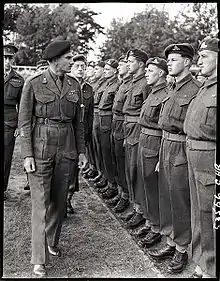 Shortly thereafter, on 7 August 1941 he was promoted again, now to brigadier,[19] and made acting Brigadier General Staff (BGS) of I Canadian Corps under McNaughton and later George Pearkes. Later he was confirmed as brigadier and stayed in the BGS role under Harry Crerar until mid-July 1942. Crerar, however, had opposed Simonds' appointment and considered his removal.[23] During his time as BGS, numerous exercises, including Bumper in September 1941 and Tiger in May 1942 were conducted, with Simonds catching British Lieutenant-General Bernard Montgomery's eye on both occasions.[24][23]