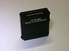 In addition to clones based on emulated HP-41 hardware, there exists at least one actual hardware clone of the HP-41 series. This is the HP41CL HP-41-series CPU board upgrade created by Monte Dalrymple at Systemyde.[15] The HP41CL is a ground up redesign of the components found on the HP-41 CPU board, including the CPU, which is implemented on an FPGA and coded in Verilog RTL.[16] The HP41CL upgrade board is made as a drop-in replacement for the HP-41 series CPU board, assuming that one has an HP-41 that has a compatible CPU board connector and a separate CPU board as well.[17] The upgrade comes with an over 600 register extended memory and over 320 plug-in module images.[15] This is possible due to the fact that the HP41CL has over 1024 pages of 4K-word flash memory built in, of which over 500 pages are pre-loaded with HP-41 software, as well as the upgrade board providing 128 RAM pages, which are made available to the user via a custom MMU.[15] In addition, a "turbo" mode is provided by the HP41CL upgrade board's "NEWT" CPU design, which allows the user to speed up their calculator by a factor of around 50 times.[15] Also, the HP41CL maintains full compatibility with the HP-41 series bus, so that most plug-in modules can still be used in a fully backward compatible fashion.[15] Additionally, Systemyde makes an HP-41 compatible timer module clone as well as a GPS receiver interface module.[18] Furthermore, an optional RS-232 full-duplex serial connector (with a 2.5mm stereo jack physical interface) is available, if one has a free module slot.[19]