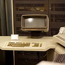 The HP 250 borrowed the embedded keyboard design from the HP 300 and added a wider slide-able and tilt-able monitor with screen labeled function keys buttons physically placed just below on-screen labels (a configuration now used in ATMs and gas pumps) built into a large desk design.