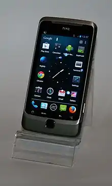 The HTC Desire Z (also marketed as T-Mobile G2 in the US) (codenamed HTC Vision)[3] is a slider-style smartphone developed by HTC Corporation and announced on 15 September 2010; it was released in Europe and Canada in November 2010, following a number of delays related to Google's quality assurance tests.[4] Other than its slider configuration, the Desire Z features specifications similar to the HTC Desire and the HTC Desire HD.[5] The design of the HTC Desire Z has capacitive face buttons rather than the mechanical ones the HTC Desire features.