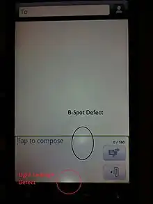 - ↑ "White/light spot on screen - Android Forums". 21 June 2010. Archived from the original on 25 April 2016. Retrieved 15 August 2022.