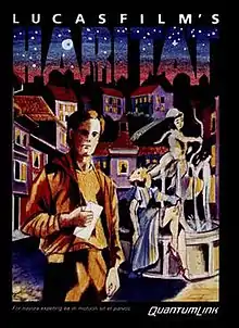 Habitat is a massively multiplayer online role-playing game (MMORPG) developed by LucasArts. It is the first attempt at a large-scale commercial virtual community[4][5] that was graphic based. Initially created in 1985 by Randy Farmer, Chip Morningstar,[6] Aric Wilmunder and Janet Hunter the game was made available as a beta test in 1986 by Quantum Link, an online service for the Commodore 64 computer and the corporate progenitor to AOL. Both Farmer and Morningstar were given a First Penguin Award at the 2001 Game Developers Choice Awards for their innovative work on Habitat. As a graphical MUD[7] it is considered a forerunner of modern MMORPGs unlike other online communities of the time (i.e. MUDs and massively multiplayer onlines with text-based interfaces). Habitat had a GUI and large user base of consumer-oriented users, and those elements in particular have made Habitat a much-cited project and acknowledged benchmark for the design of today's online communities that incorporate accelerated 3D computer graphics and immersive elements into their environments.