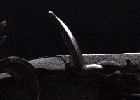 On the release of the lever or trigger, the spring-loaded serpentine would move in reverse to clear the pan. For obvious safety reasons, the match would be removed before reloading the gun. Both ends of the match were usually kept alight in case one end should be accidentally extinguished.