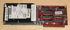 The Hardcard provided the computer industry with the first one-inch-thick HDD,[5] but it was an interface and form factor only compatible with the full length card slot of the ISA[9] bus first introduced with the IBM PC. As such it had a thicker head disk assembly[10] than the subsequently introduced 1-inch high standard form factor 31⁄2-inch HDDs.