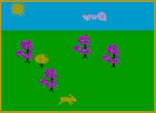 The only interaction is pressing the cursor keys to follow the hare, which moves across the screen and disappears to one side. "Rooms" are a non-Euclidean space - the user wanting to go back and pressing the appropriate key did not always return to the same place, sometimes ending up in a different "room."