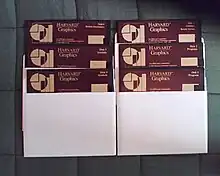 Harvard Graphics was one of the first desktop business application software programs that allowed users to incorporate text, information graphics, and charts into custom slideshow presentations. The original version could import data from Lotus 1-2-3 or Lotus Symphony, charts created in Symphony or PFS Graph, and ASCII text. It could export text and graphics to Computer Graphics Metafile and to pfs:Write, also manufactured by SPC.[1] Its use of vector graphics produced mixed results on the CGA and EGA displays common at the time, but output was usually sent to a slide printer or a color plotter.[2]