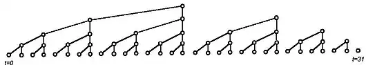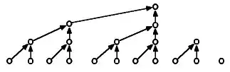 There are different algorithms that can be used to build a hash calendar and extract a relevant hash chain per second. The easiest is to imagine the calendar being built in two phases. In the first phase, the leaves are collected into complete binary trees, starting from left, and making each tree as large as possible.