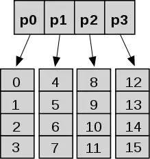 As defined by Sitarski, a hashed array tree has a top-level directory containing a power of two number of leaf arrays. All leaf arrays are the same size as the top-level directory. This structure superficially resembles a hash table with array-based collision chains, which is the basis for the name hashed array tree. A full hashed array tree can hold m2 elements, where m is the size of the top-level directory.[1] The use of powers of two enables faster physical addressing through bit operations instead of arithmetic operations of quotient and remainder[1] and ensures the O(1) amortized performance of append operation in the presence of occasional global array copy while expanding.