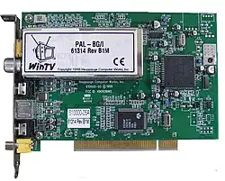 Hauppauge's principal software offering is WinTV, a TV tuning, viewing, and recording application supplied on a CD-ROM included with tuner hardware.[2] A previous version was called WinTV2000 (WinTV32 without skins). It had companion applications, including WinTV Scheduler, which performs timed recordings, and WinTV Radio, which receives FM radio. It was modified towards a service-based software package, with card management and recordings taken care of by the "TV Server" service and EPG data collection by the "EPG Service", allowing WinTV2000 to work with multiple Hauppauge tuners in the same PC.