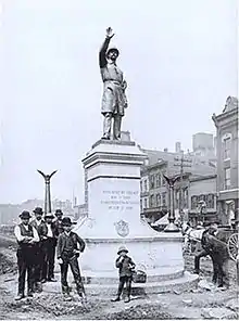 The site of the incident was designated a Chicago landmark in 1992,[11] and a sculpture was dedicated there in 2004. In addition, the Haymarket Martyrs' Monument was designated a National Historic Landmark in 1997 at the defendants' burial site in Forest Park.[12]