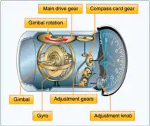 Some more expensive heading indicators are "slaved" to a magnetic sensor, called a flux gate. The flux gate continuously senses the Earth's magnetic field, and a servo mechanism constantly corrects the heading indicator.[4] These "slaved gyros" reduce pilot workload by eliminating the need for manual realignment every ten to fifteen minutes.
