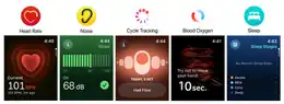Users with a connected Apple Watch will have their health information from the device automatically imported into the health app including their activity rings, walking and running distances, flights climbed, mindfulness minutes, sleep analysis, handwashing metrics, environmental noise levels, heart rate, blood oxygen levels, and ECG measurements.[1][2] Health data can also be logged manually or through third-party applications.