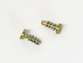 For larger heat sinks and higher preloads, push pins with compression springs are very effective.[18] The push pins, typically made of brass or plastic, have a flexible barb at the end that engages with a hole in the PCB; once installed, the barb retains the pin. The compression spring holds the assembly together and maintains contact between the heat sink and component. Care is needed in selection of push pin size. Too great an insertion force can result in the die cracking and consequent component failure.
