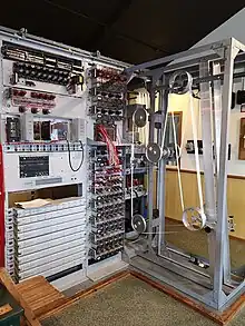 Despite the success of Colossus, the Robinson approach was still valuable for certain problems. Improved versions were developed, nicknamed Peter Robinson and Robinson and Cleaver after department stores in London.[19] A further development of the ideas was a machine called Super Robinson or Super Rob.[20] Designed by Tommy Flowers, this one had four bedsteads[21] to allow for running four tapes and was used for running depths and "cribs" or known-plaintext attack runs.[22][23]