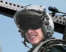 A helmet-mounted display (HMD) is a headworn device that uses displays and optics to project imagery and/or symbology to the eyes.[1][2][3] It provides visual information to the user where head protection is required – most notably in military aircraft. The display-optics assembly can be attached to a helmet or integrated into the design of the helmet. An HMD provides the pilot with situation awareness, an enhanced image of the scene, and in military applications cue weapons systems, to the direction their head is pointing. Applications which allow cuing of weapon systems are referred to as helmet-mounted sight and display (HMSD) or helmet-mounted sights (HMS).
