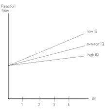 E. Roth (1964) demonstrated a correlation between IQ and information processing speed, which is the reciprocal of the slope of the function:[4]