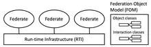- Federation: A set of federates that connect to the same RTI together with a common FOM.