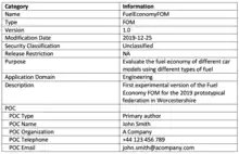 - Federation Object Model (FOM): A document that specifies object classes, interaction classes, data types and additional data that is used for the information exchange in a federation. A FOM is an XML file that follows the format of the HLA Object Model Template and the associated XML Schema. Different FOMs are used for exchanging data for different application domains. There are standardized FOMs, called reference FOMs, that are commonly used as a starting point for FOM development. A FOM can be developed and extended in a modular way using FOM modules.