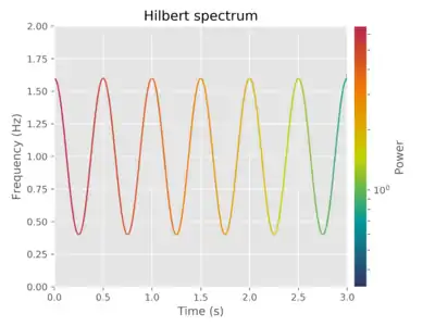 where is the length of the sampled signal . The Marginal Hilbert Spectrum show the total energy that each frequency value contribute with.[1]