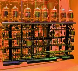 A computer is an automatic abacus. The type of number system affects the way it works. In the early 1950s, most computers were built for specific numerical processing tasks, and many machines used decimal numbers as their basic number system; that is, the mathematical functions of the machines worked in base-10 instead of base-2 as is common today. These were not merely binary-coded decimal (BCD). Most machines had ten vacuum tubes per digit in each processor register. Some early Soviet computer designers implemented systems based on ternary logic; that is, a bit could have three states: +1, 0, or -1, corresponding to positive, zero, or negative voltage.