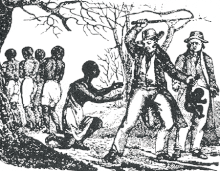 The history of slavery in Oklahoma began in the 1830s with the five Native American nations in the area: Cherokee, Chickasaw, Choctaw, Creek, and Seminole.[1] Slavery within these Native American nations began simply by placing a lower status on them than their master. The slavery in these tribes varied in style, being specifically different from American slavery. Slavery in the area continued to grow for many years, even throughout the entirety of the Civil War. The growth was significant, slaves making up a portion of the population in the new Indian territory.[2] Slavery ended in the Oklahoma area with the completion of the Civil War. Treaties were made with the nations regarding citizenship and slavery for African Americans. The repercussions of slavery that followed greatly affected the state, with prominent racial issues.