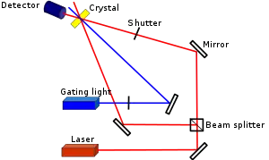 For two-color holographic recording, the reference and signal beam fixed to a particular wavelength (green, red or IR) and the sensitizing/gating beam is a separate, shorter wavelength (blue or UV). The sensitizing/gating beam is used to sensitize the material before and during the recording process, while the information is recorded in the crystal via the reference and signal beams. It is shone intermittently on the crystal during the recording process for measuring the diffracted beam intensity. Readout is achieved by illumination with the reference beam alone. Hence the readout beam with a longer wavelength would not be able to excite the recombined electrons from the deep trap centers during readout, as they need the sensitizing light with shorter wavelength to erase them.
