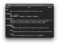 ![]() Homebrew 4.2.2 man page in the Mac Terminal | |