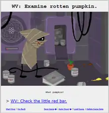 While nominally a webcomic, Homestuck consists of a combination of static images, animated GIFs, and instant message logs.[2] Generally, pages included a single panel, and navigational links to successive pages are phrased similarly to commands in interactive fiction games.[3]: 28–29 [4]: 1038–1039 Additionally, unlike previous works from Andrew Hussie which exclusively relied on GIF images for animation,[5] Homestuck introduced complex animations and browser games made with Adobe Flash,[6][7] many involving contributions from fan artists.[8] According to academic Kevin Veale of Massey University, Homestuck used these various methods of engagement to manipulate its readers' experiences in order to tell a multilayered non-linear story.[4]