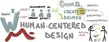 To conclude the Human-Centered Design Process, there are two final steps. Upon wireframing or sketching, the designer will usually turn their paper sketches or low-fidelity wireframes into high-fidelity prototypes. Prototyping allows the designer to explore their design ideas further and focus on the overall design concept.[10] High-fidelity means that the prototype is interactive or "clickable" and simulates the a real application.[11] After creating this high-fidelity prototype of their design, the designer can then conduct usability testing. This involves collecting participants that represent the target audience of the product and having them walk through the prototype as if they were using the real product. The goal of usability testing is to identify any issues with the design that need to be improved and analyze how real users will interact with the product.[12] To run an effective usability test, it is imperative to take notes on the users behavior and decisions and also have the user thinking out loud while they use the prototype.