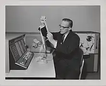 An IBM 1620 model II was used by Vearl N. Huff, NASA Headquarters (FOB 10B, Washington DC) to program a three-dimensional simulation in Fortran of the tethered Gemini capsule – Agena rocket module two-body problem at a time when it was not completely understood if it was safe to tether two objects together in space due to possible elastic tether induced collisions. The same computer was also used to simulate the orbits of the Gemini flights, producing printer-art charts of each orbit. These simulation were run over-night and the data examined the next day.[33]