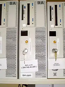 The Apple Network Server (ANS) systems were PowerPC-based systems designed by Apple Computer to have numerous high-end features that standard Apple hardware did not have, including swappable hard drives, redundant power supplies, and external monitoring capability. These systems were more or less based on the Power Macintosh hardware available at the time but were designed to use AIX (versions 4.1.4 or 4.1.5) as their native operating system in a specialized version specific to the ANS called AIX for Apple Network Servers.