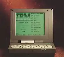 The PCradio was a notebook computer released by International Business Machines (IBM) in late 1991.[4] Designed primarily for mobile workers such as service technicians, salespersons and public safety workers, the PCradio featured a ruggedized build with no internal hard disk drive and was optioned with either a cellular or ARDIS RF modem, in addition to a standard landline modem.[5][6]