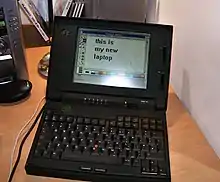 ![]() An IBM ThinkPad 350 sitting open. | |