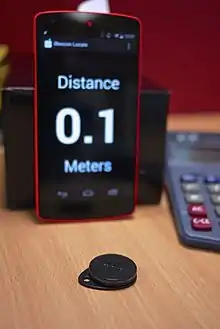 iBeacon is a protocol developed by Apple and introduced at the Apple Worldwide Developers Conference in 2013.[1] Various vendors have since made iBeacon-compatible hardware transmitters – typically called beacons – a class of Bluetooth Low Energy (BLE) devices that broadcast their identifier to nearby portable electronic devices. The technology enables smartphones, tablets and other devices to perform actions when in proximity to an iBeacon.[2][3]