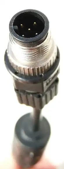 IEC metric screw sized connectors is a family of electrical connectors defined by IEC that are named according to their ISO metric screw thread, namely M5, M8 and M12.[1] The number gives their outer screw thread diameter in millimeters as with the identically named screws. However, the connectors are further classified by a so-called coding, denoted by one or more letters, which defines things like pin layout, shape of connecting surfaces and electrical properties.[2][3]