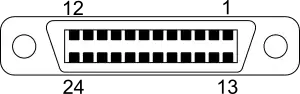 The IEC 60625 standard prescribes the use of 25-pin D-subminiature connectors (the same as used for the parallel port on IBM PC compatibles). This connector did not gain significant market acceptance against the established 24-pin connector.