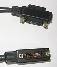 IEEE 488 specifies a 24-pin Amphenol-designed micro ribbon connector. Micro ribbon connectors have a D-shaped metal shell, but are larger than D-subminiature connectors. They are sometimes called "Centronics connectors" after the 36-pin micro ribbon connector Centronics used for their printers.