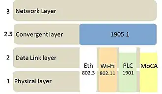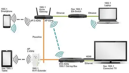 IEEE 1905.1 is an IEEE standard which defines a network enabler for home networking supporting both wireless and wireline technologies: IEEE 802.11 (marketed under the Wi-Fi trademark), IEEE 1901 (HomePlug, HD-PLC) power-line networking, IEEE 802.3 Ethernet and Multimedia over Coax (MoCA).[1]
