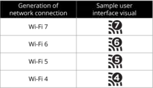 | *Wi‑Fi 0, 1, 2, and 3 are named by retroactive inference. They do not exist in the official nomenclature.[5][6][7] | ||||