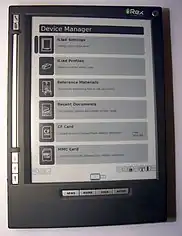 The iLiad was an electronic handheld device, or e-Reader, which could be used for document reading and editing. Like the Barnes and Noble nook, Sony Reader or Amazon Kindle, the iLiad made use of an electronic paper display. In 2010, sales of the iLiad ended when its parent company, iRex Technologies, filed for bankruptcy. [1]