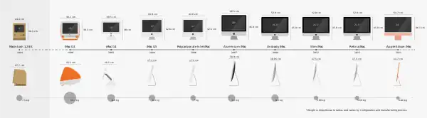 | Timeline of iMac and eMac models (sorted by screen sizes) |