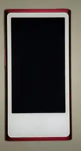 The device features a small 1.55-inch multi-touch screen with a lower resolution of 240×240 pixels but a higher pixel density of 220 pixels per inch,[24] as opposed to the larger 2.2-inch screen on the fifth-generation iPod Nano. The device has a 0.39 watt-hour battery rated at 3.7 volts, giving a capacity of 105 mAh,[25] and specified to give 24 hours of music playback on a single full charge. The device takes about three hours for a full charge. The device retains the same 30-pin dock connector as previous generations. This Nano loses the previous generation's video camera, built-in voice recorder microphone (although plugging in headphones with a built-in microphone reveals a Voice Memos app) and built-in speaker, and games. It also loses support for video playback,[26] but music videos and video podcasts (vodcasts) can be synced onto the device, and the audio from them plays on the device, with a single key-frame shown on the screen.[27] It still includes the Nike+iPod fitness option as well as an FM radio tuner with RDS (Radio Data System). It has a black-on-white screen contrast option and other accessibility options. The 6th generation iPod Nano has the same price point as the 5th generation device.
