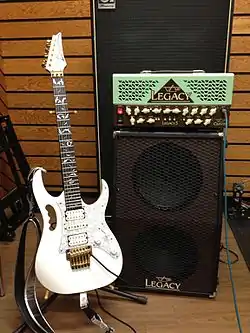 Ibanez (アイバニーズ, Aibanīzu) is a Japanese guitar brand owned by Hoshino Gakki.[1] Based in Nagoya, Aichi, Japan, Hoshino Gakki were one of the first Japanese musical instrument companies to gain a significant foothold in import guitar sales in the United States and Europe, as well as the first brand of guitars to mass-produce the seven-string guitar and eight-string guitar. Ibanez manufactures effects, accessories, amps, and instruments in Japan, China, Indonesia, and the United States (at a Los Angeles-based custom shop). As of 2017 they marketed nearly 165 models of bass guitar, 130 acoustic guitars, and more than 300 electric guitars. After Gibson and Fender, Ibanez is considered the third biggest guitar brand.[2]