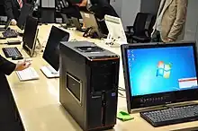 In October 2009, three IdeaCentre desktops were announced: the B500, K300, and H230.[16] The B500 desktop was equipped with an Intel Core 2 Quad processor, up to 8GB of DDR3 RAM, up to 1TB hard disk drive, a 23” full HD screen, and JBL integrated speakers.[16] The desktop also included a 4-in-1 remote control that could be used as a motion controller for games, a VoIP handset, an air mouse, and a media remote.[16] A feature that was described as unique by Lenovo was the CamSuite software, designed to keep users in the center of the web camera's focus area.[16]