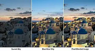 Advanced Dynamic Blending is a concept introduced by photographer Elia Locardi in his blog Blame The Monkey to describe the photographic process of capturing multiple bracketed exposures of a land or cityscape over a specific span of time in a changing natural or artificial lighting environment. Once captured, the exposure brackets are manually blended together into a single High Dynamic Range image using post-processing software. Dynamic Blending images serve to display a consolidated moment. This means that while the final image may be a blend of a span of time, it visually appears to represent a single instant.[12][13][14]