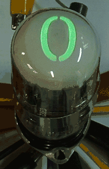 In March 1967,[13] IEE introduced another numeric display unit that is in essence a miniature cathode-ray tube. The tube has ten electron guns in two rows of five, each pointed to number-shaped stencils on a mask; when a number is selected, one of the guns fires through the corresponding stencil, onto the phosphor-coated glass screen on the face of the tube.[14] This display, later named the nimo tube,[15] was described by Electronic Design as "fairly simple" compared to other CRT-based digital display solutions due to the lack of a need for a deflection yoke.[14] Electronic Equipment Engineering called it an advancement of their rear-projection displays.[15] The anode required 2 (or 2.5[13]) kV for operation but only about 30 µA of current; IEE sold the power supplies separately. Suggested applications of the tube in 1967 included voltmeters, digital counters, and cockpit readouts. Only tubes with a green (P31) phosphor were available at launch;[14] purchasers could later choose any phosphor they desired.[15]