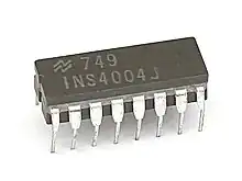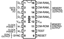 To reach the price goals, it was important that the chip be as small as possible and use the fewest number of leads. As data was 4 bits and the address space was 12 bits (4096 bytes), there was no way direct access could be arranged with anything fewer than about 24 pins. This was not small enough, so the design would use a 16-pin dual in-line package (DIP) layout and use multiplexing of a single set of 4 lines. This meant specifying which address in ROM to access required three clock cycles, and another two to read it from memory. Running at 1 MHz would allow it to perform math on the BCD values at about 80 microseconds per digit.[14]