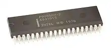 ![]() An Intel P8085AH-2 processor variant with black plastic and silver pins | |