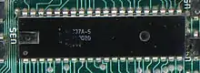 A single 8237 was used as the DMA controller in the original IBM PC and IBM XT. The IBM PC AT added another 8237 in master-slave configuration, increasing the number of DMA channels from four to seven.[2] Later IBM-compatible personal computers may have chip sets that emulate the functions of the 8237 for backward compatibility. The Intel 8237 was actually designed by AMD (called Am9517[3]). It was part of a cross licensing agreement, allowing AMD to manufacture Intel processors, that made the design available for Intel as well. This is why the Intel package has "(C) AMD 1980" printed on it. The 8237, that operate at 3MHz and 5MHz was made by Intel as described in variants while NEC has developed the μPD71037, a version that operates at 10MHz.[4]